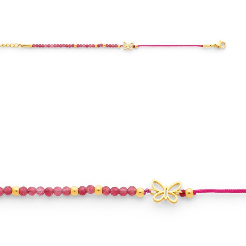 Bracelet acier doré avec rubis et coton réglable de 13.5 à 16.5 cm