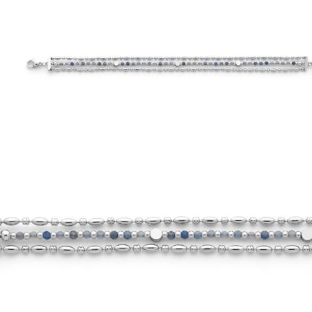 Bracelet acier avec aventurine bleue réglable de 16.5 à 19.5 cm