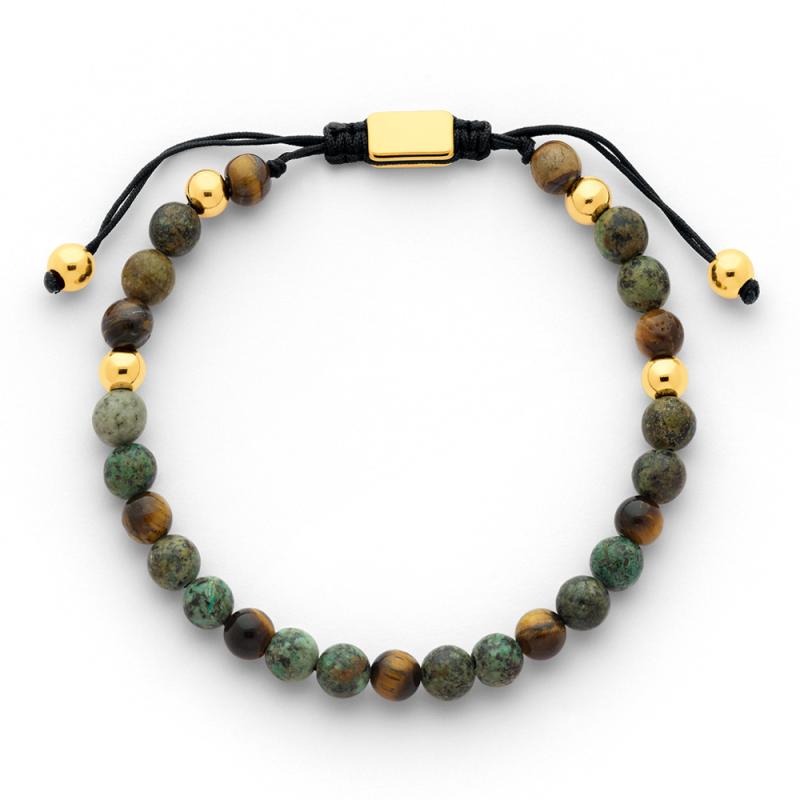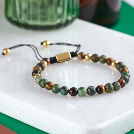 Bracelet acier doré, oeil de tigre et turquoise africaine 18 à 22 cm