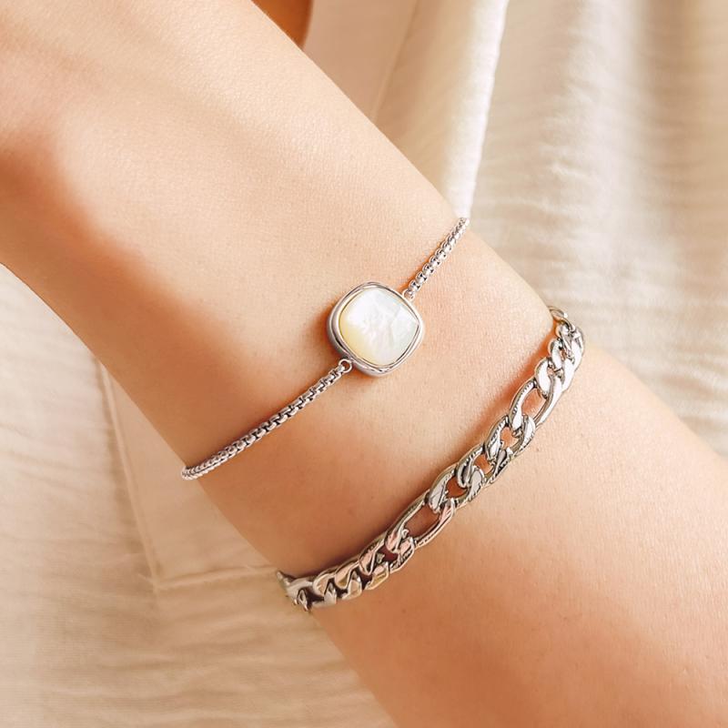 Bracelet acier avec nacre réglable de 16 à 21 cm