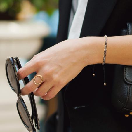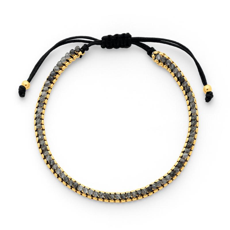 Bracelet acier doré avec quartz rutilé réglable de 15 à 20 cm