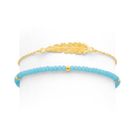 Bracelet double acier doré avec cristal réglable de 16 à 19 cm