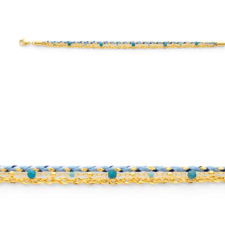 Bracelet triple acier doré avec apatite,miyuki réglable de 16 à 19 cm