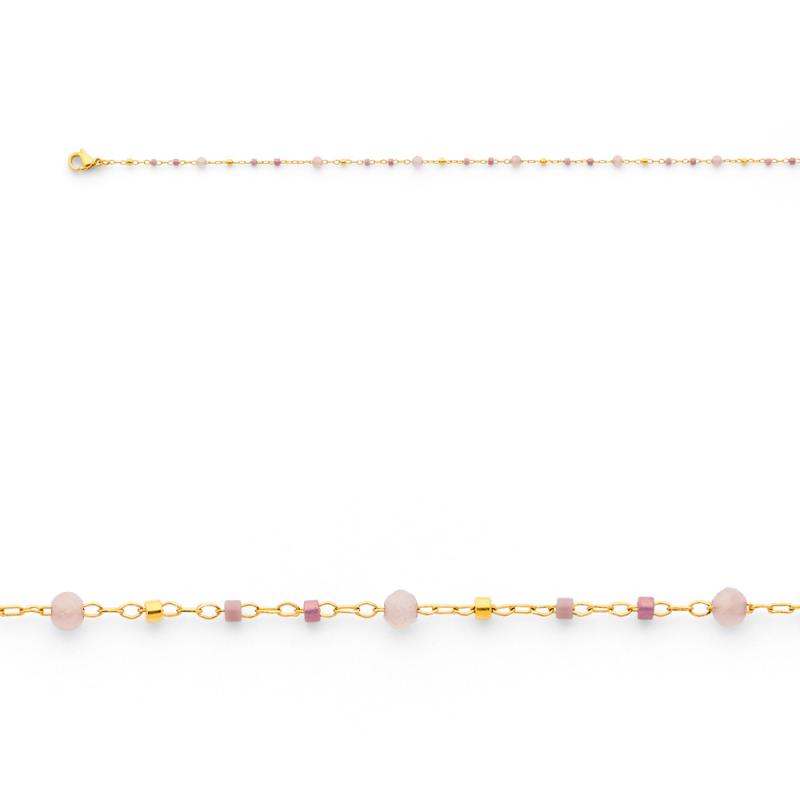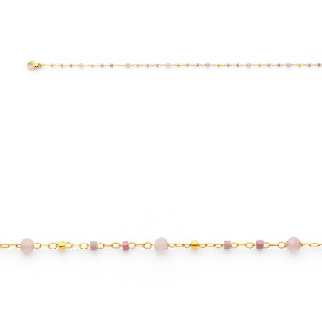 Bracelet acier doré avec quartz rose réglable de 16 à 19 cm