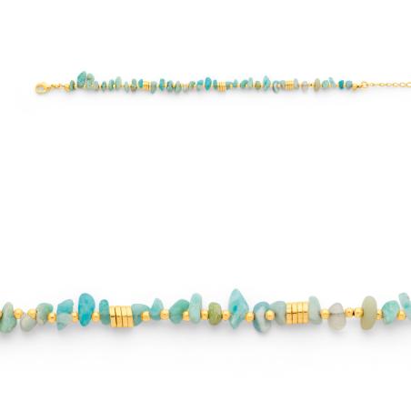 Bracelet acier doré avec amazonite réglable de 17 à 20 cm