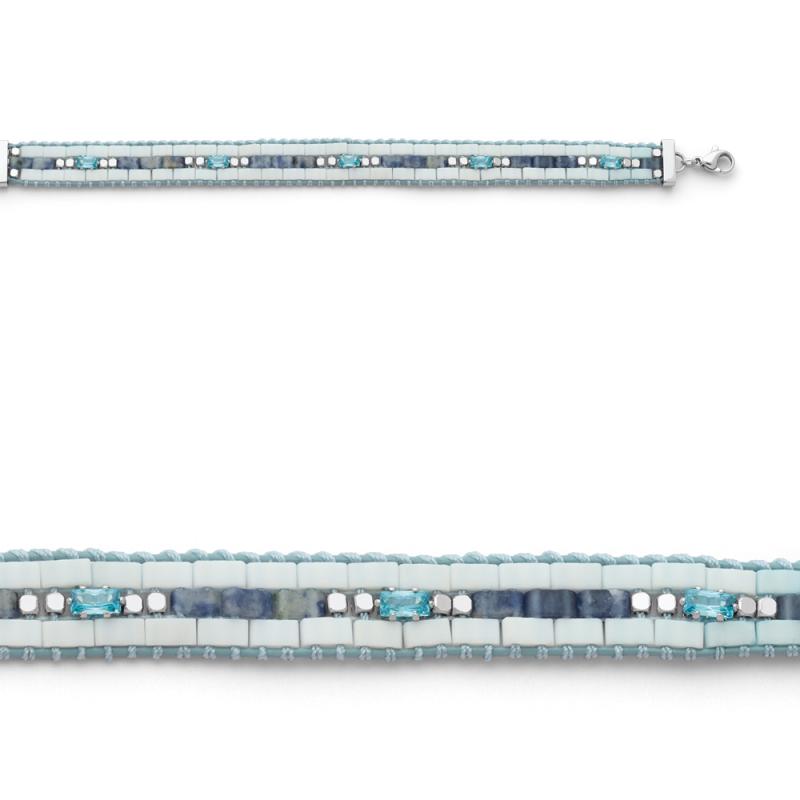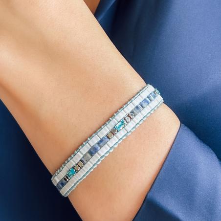 Bracelet acier avec zirconias,jaspe et miyuki réglable de 17 à 20 cm