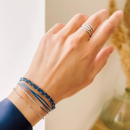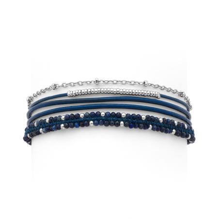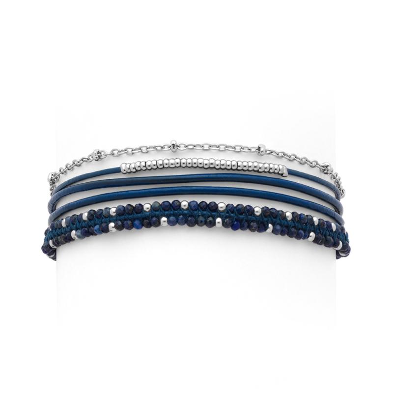 Bracelet acier 5 rangs avec lapis, miyuki réglable de 16,5 à 19,5 cm