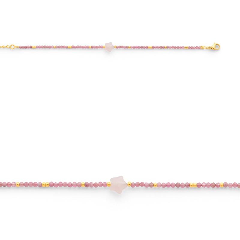Bracelet acier doré avec tourmaline et quartz réglable de 16 à 19 cm