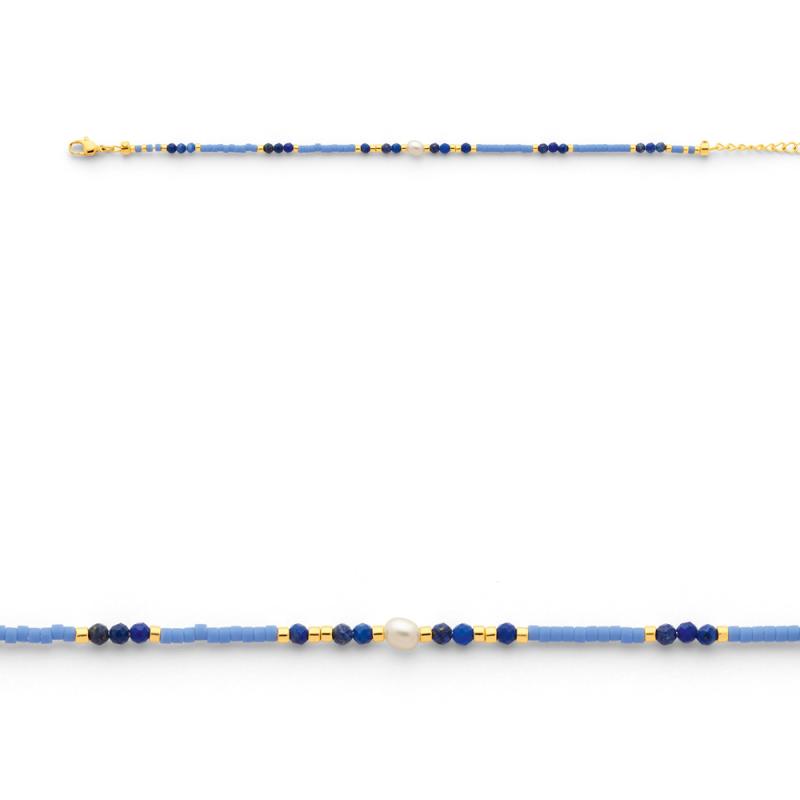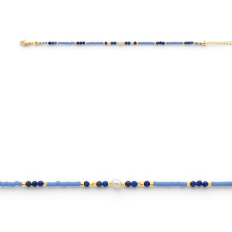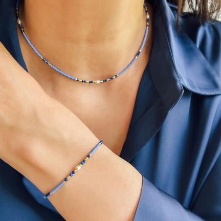 Bracelet acier doré lapis-lazuli,miyuki,perle réglable de 16 à 19 cm
