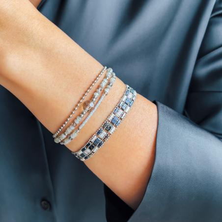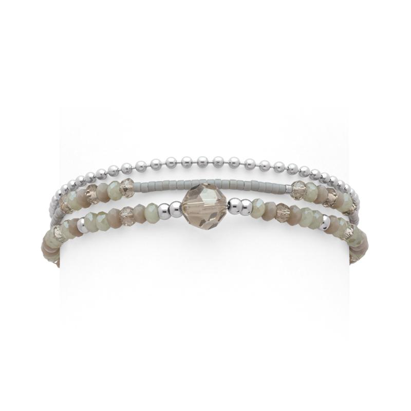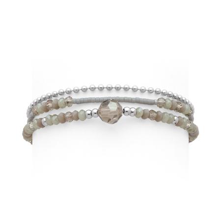 Bracelet acier 3 rangs, cristal et miyuki réglable de 16,5 à 19,5 cm