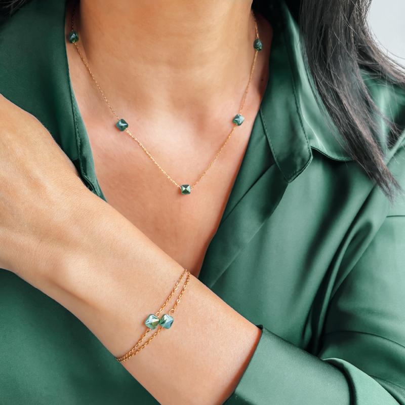 Bracelet acier doré avec verre teinté réglable de 16 à 19,5 cm
