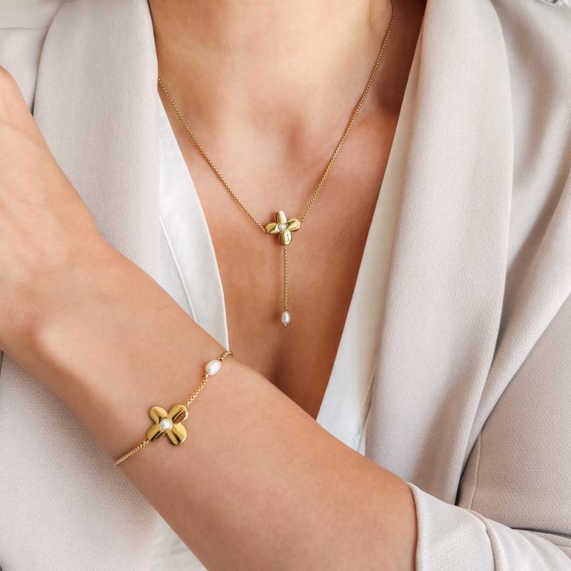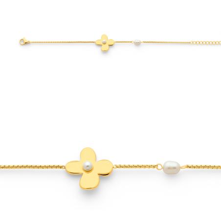 Bracelet acier doré avec perle de culture réglable de 15,5 à 19,5 cm