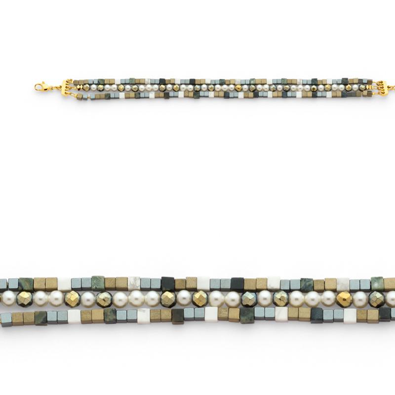 Bracelet acier doré avec hémaite, howlite et jaspe, 16 à 19,5 cm