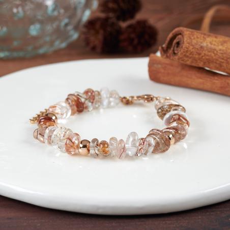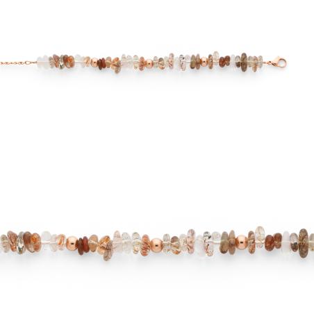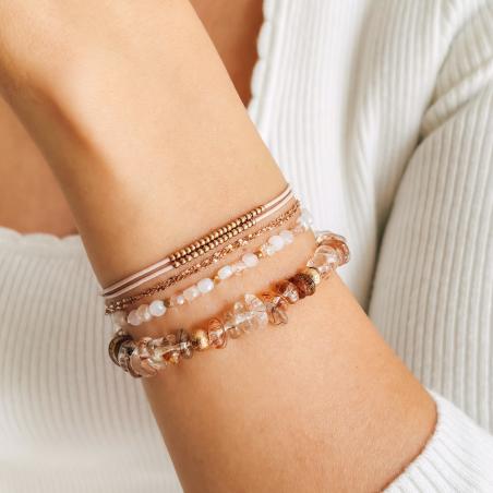 Bracelet acier rose avec cristal de roche réglable de 17 à 20 cm