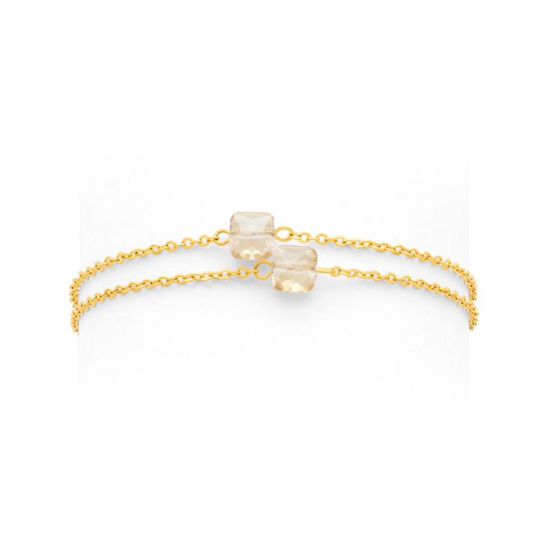 Bracelet acier doré avec verre teinté réglable de 16 à 19,5 cm