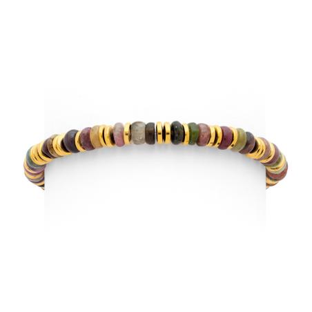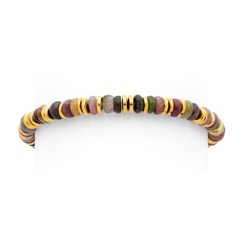 Bracelet élastique acier doré hématite, tourmaline