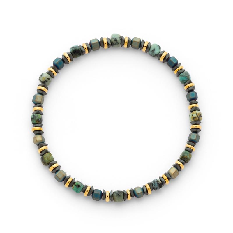 Bracelet élastique acier doré avec hématite, turquoise africaine