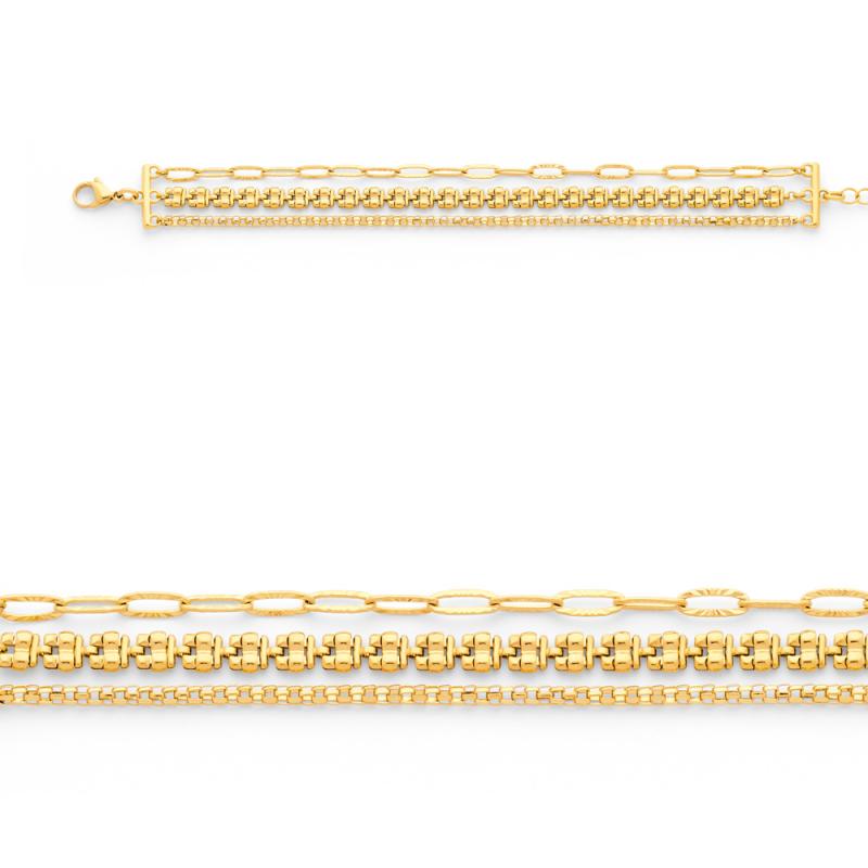 Bracelet 3 rangs acier doré réglable de 17 à 20 cm