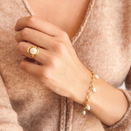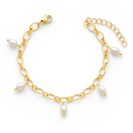 Bracelet acier doré avec perles de culture réglable de 17 à 21 cm