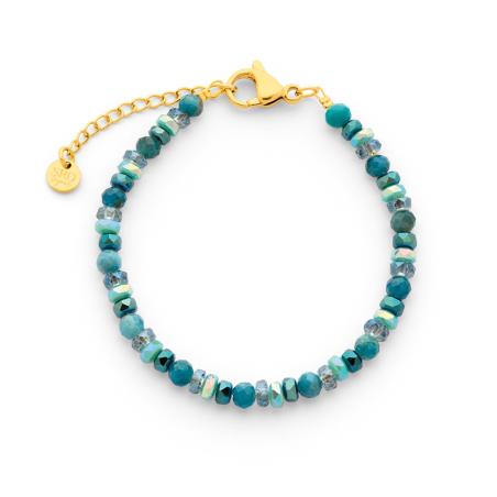 Bracelet acier doré avec apatite, verre teinté réglable de 17 à 20 cm