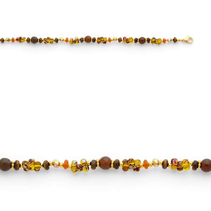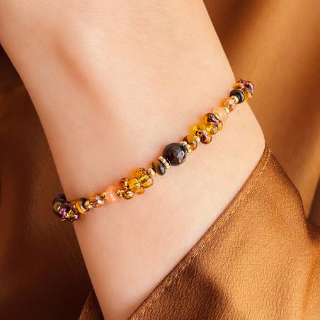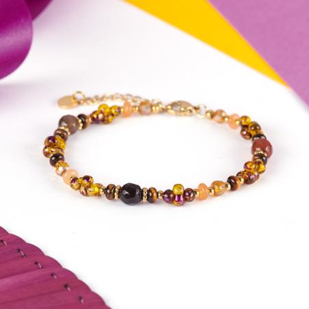 Bracelet acier doré avec oeil de tigre réglable de 16,5 à 20 cm
