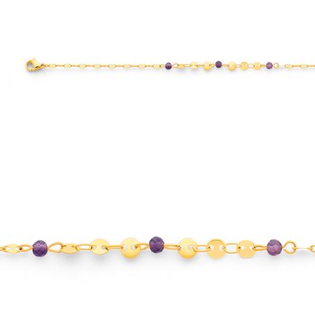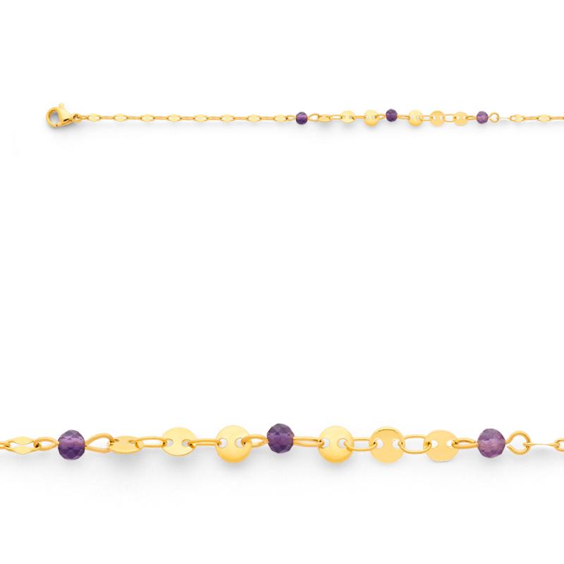 Chaîne de cheville acier doré avec améthyste réglable de 23 à 26 cm