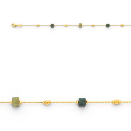 Chaîne de cheville acier doré, agate mousse réglable de 23 à 26 cm