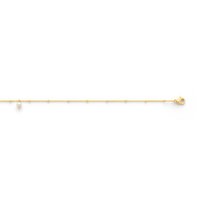Chaîne de cheville acier doré avec perle de culture 23 à 26 cm