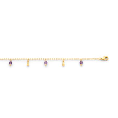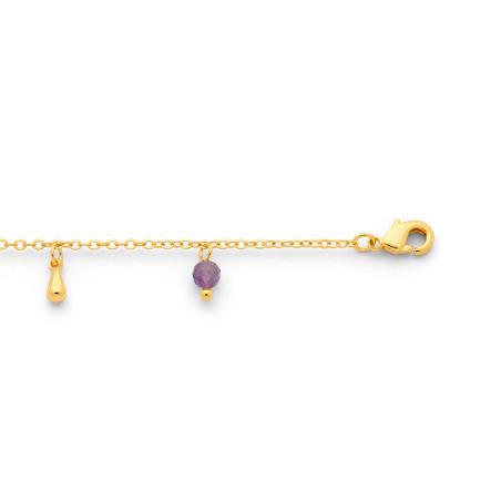 Chaîne de cheville acier doré avec améthyste réglable de 23 à 26 cm