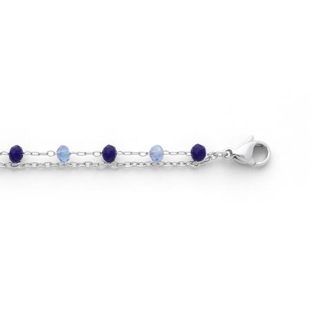 Chaîne de cheville acier avec cristal réglable de 23 à 26 cm