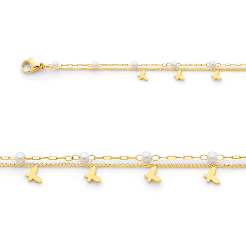 Chaîne de cheville double acier doré, nacre réglable de 23 à 26 cm