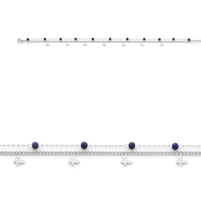 Chaîne de cheville acier avec lapis-lazuli réglable de 23 à 26 cm
