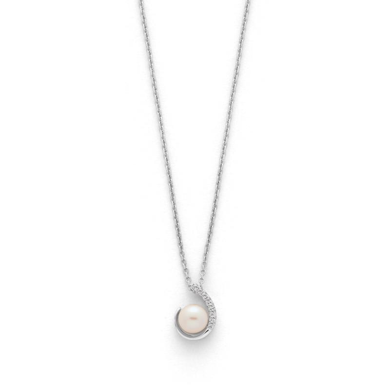 Collier argent avec perle de culture d'eau douce et zirconias 42 cm