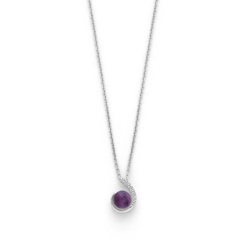 Collier argent avec amethyste et zirconias reglable de 42 à 45 cm