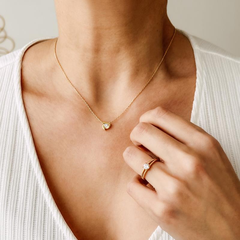 Collier plaqué or avec zirconia réglable de 38 à 43 cm