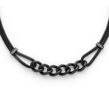 Collier acier avec cristal reglable de 42 à 47 cm