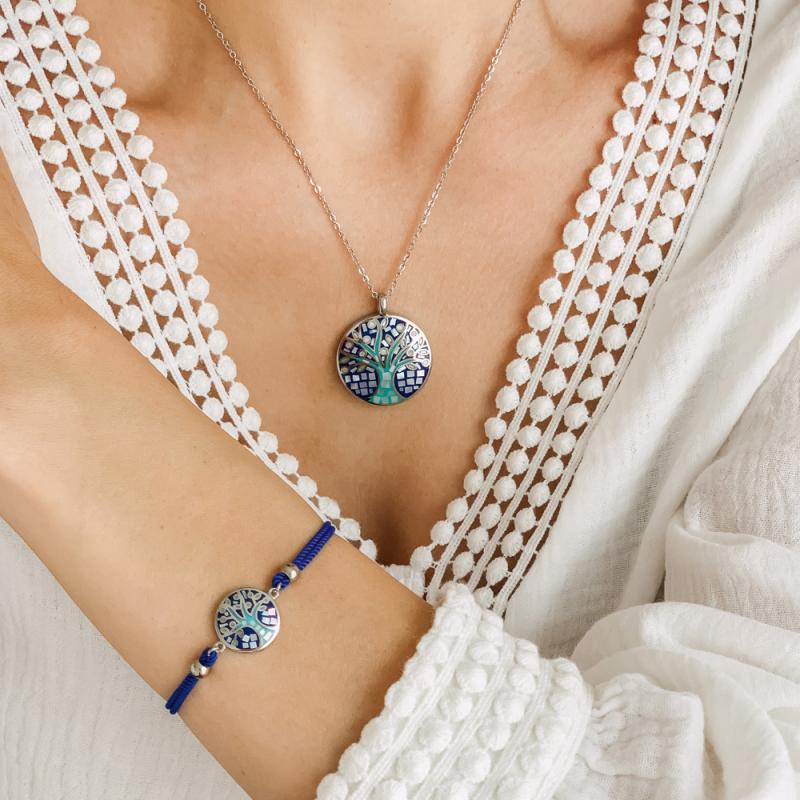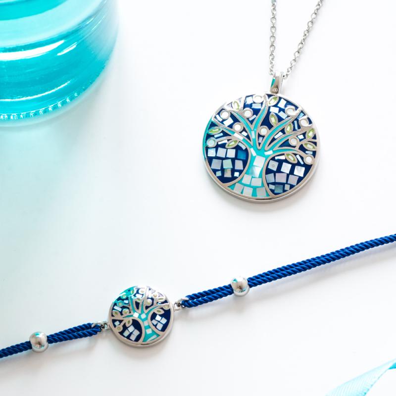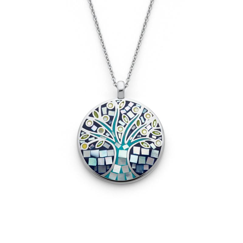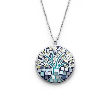 Collier acier avec nacre et émail réglable de 40 à 45 cm