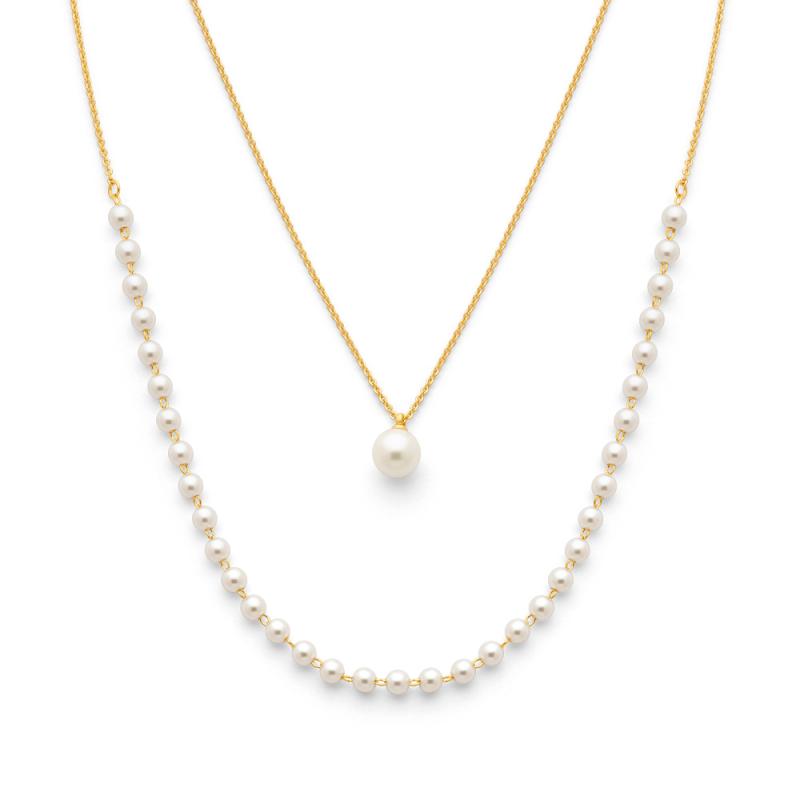 Collier double acier doré avec verre nacré réglable de 40 à 45 cm