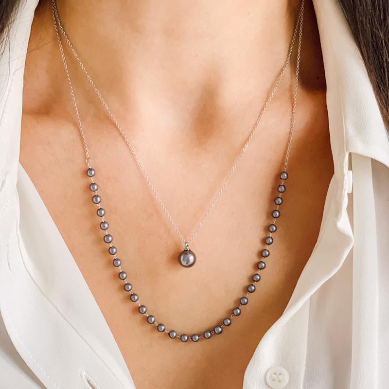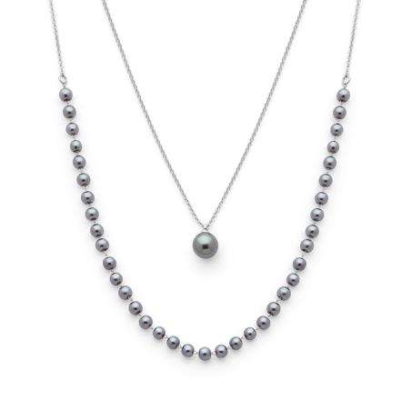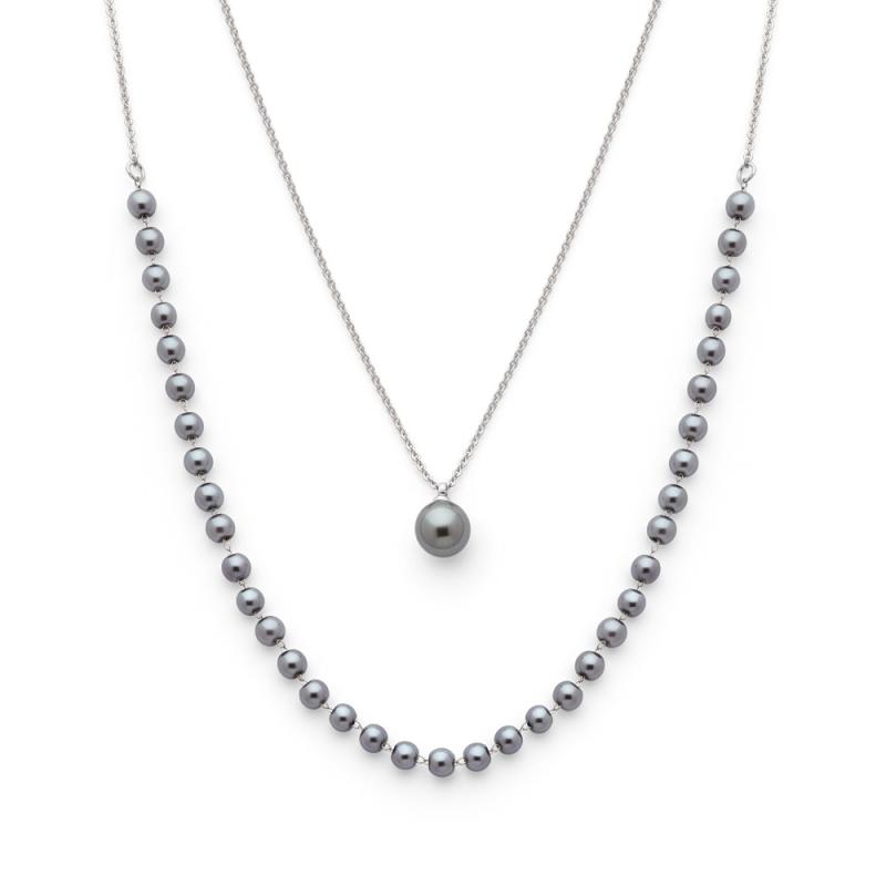 Collier double acier avec verre nacré réglable de 40 à 45 cm