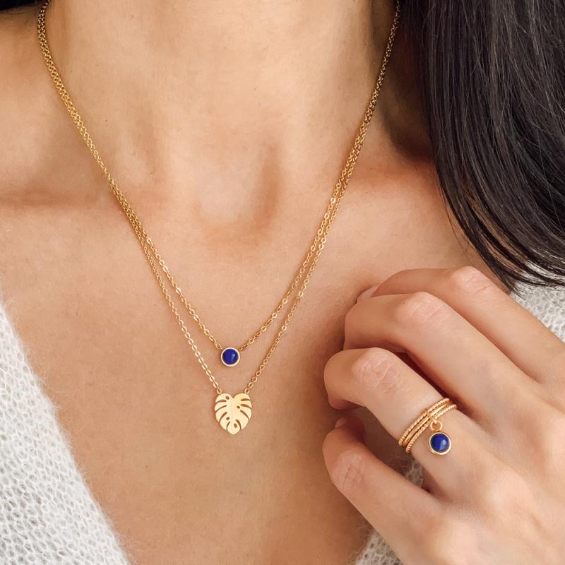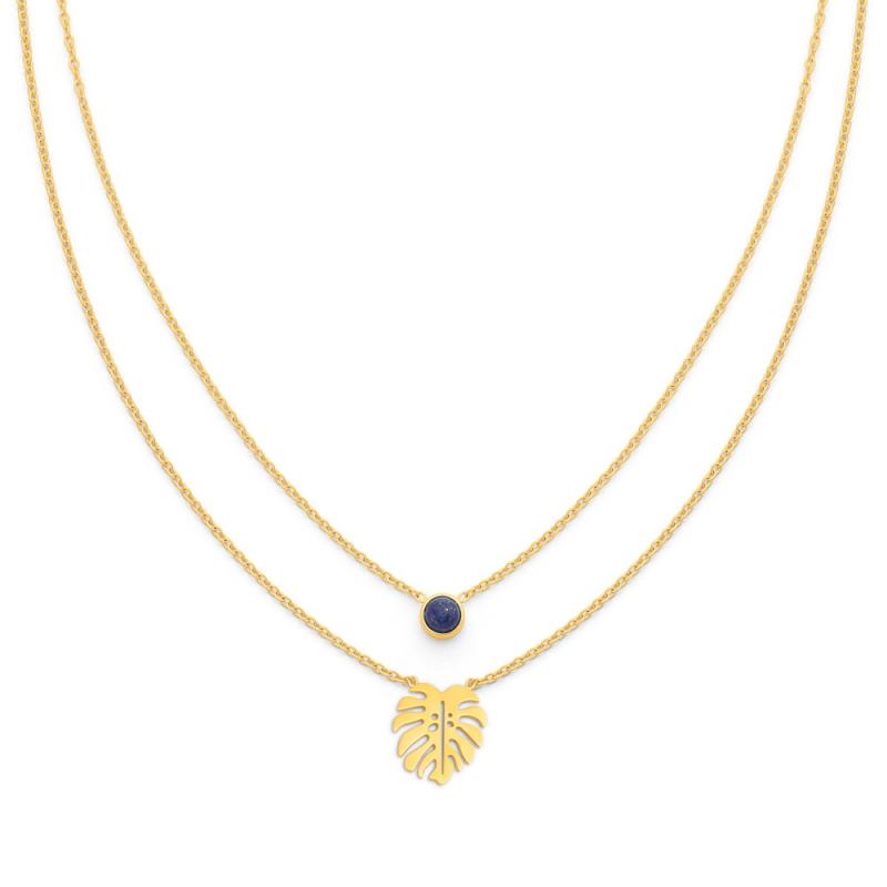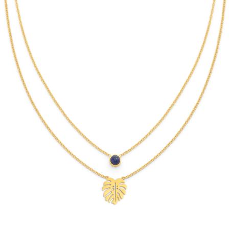 Collier double acier doré avec lapis-lazuli réglable de 40 à 45 cm