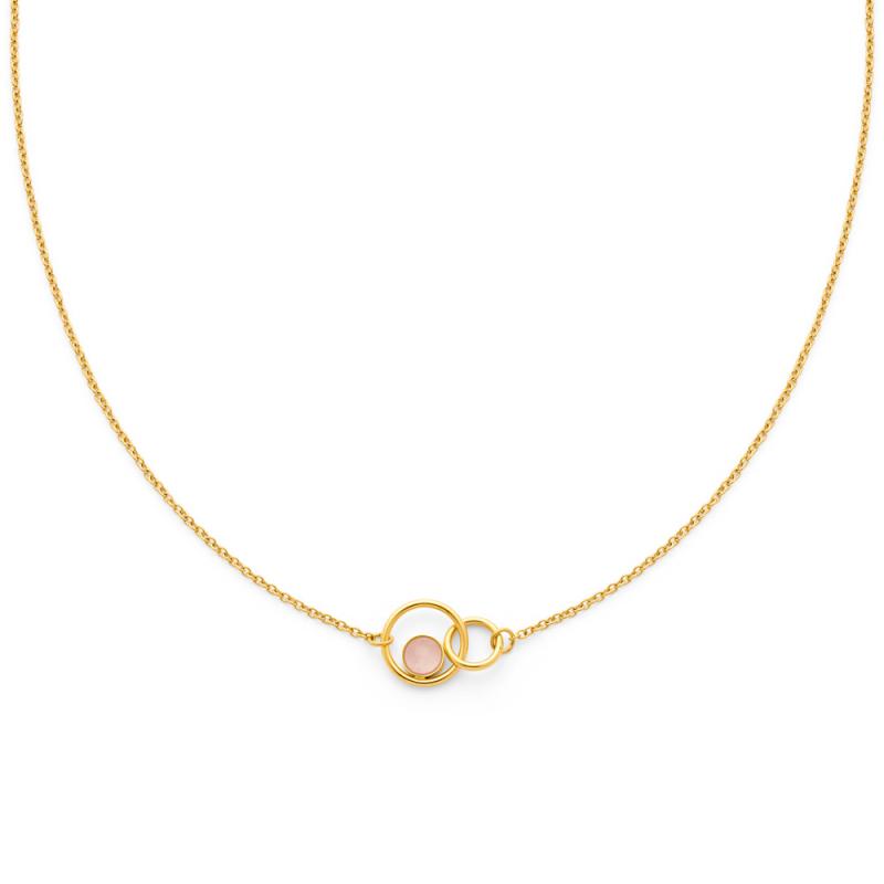 Collier acier doré avec quartz rose réglable de 40 à 45 cm