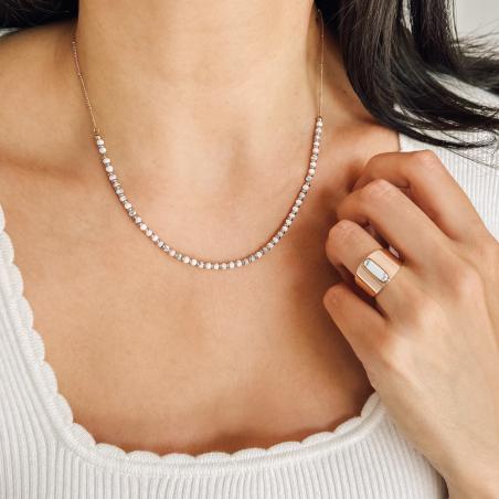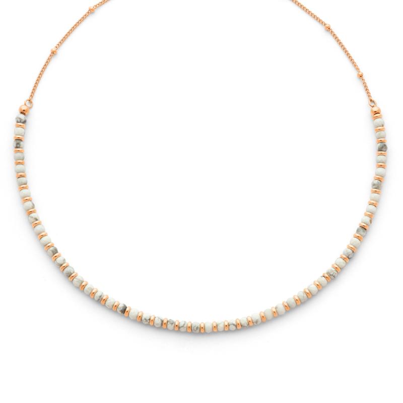 Collier acier rose avec howlite réglable de 40 à 45 cm