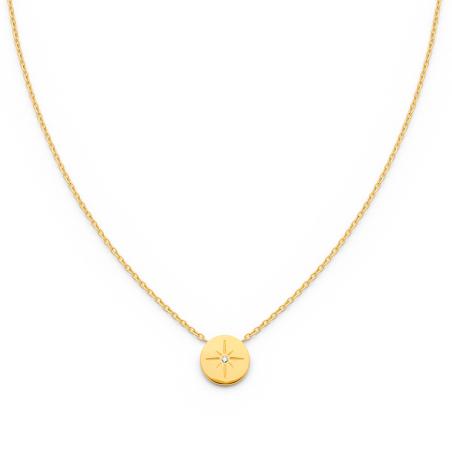 Collier acier doré avec cristal réglable de 40 à 45 cm
