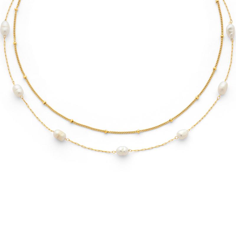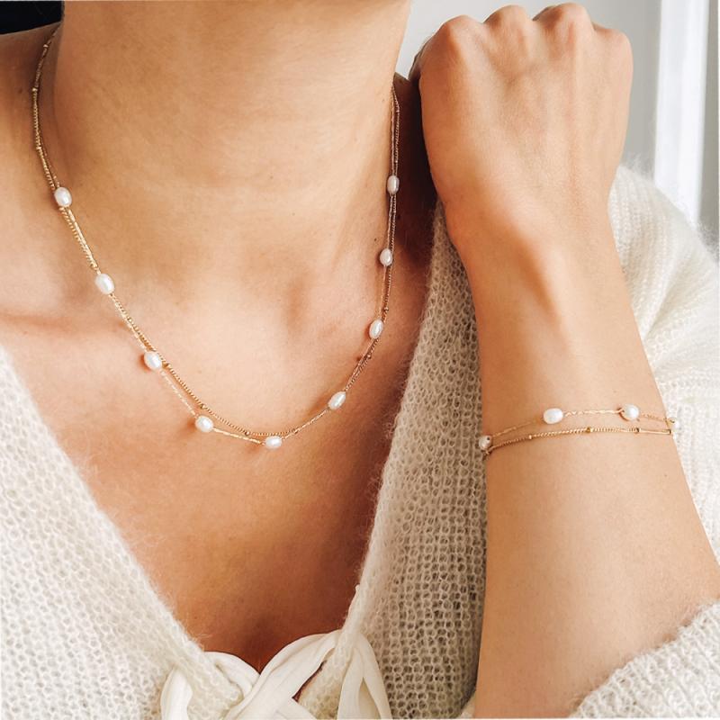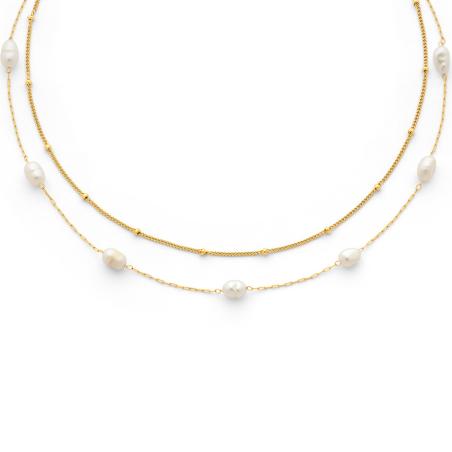 Collier acier doré avec perles de culture réglable de 40 à 45 cm