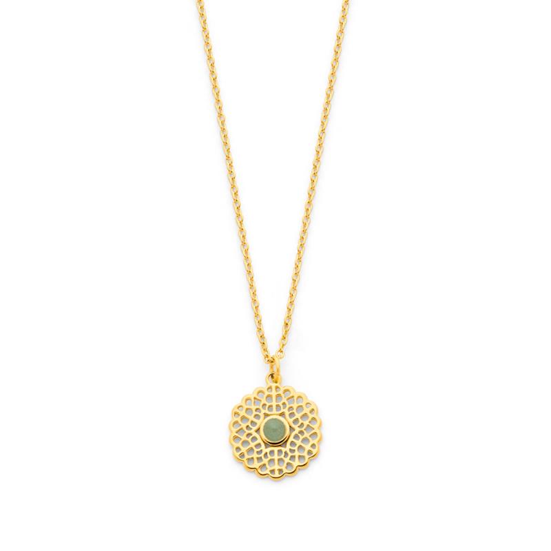 Collier acier doré avec aventurine réglable de 40 à 45 cm