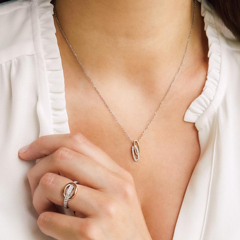 Collier acier bicolore avec zirconias réglable de 40 à 45 cm