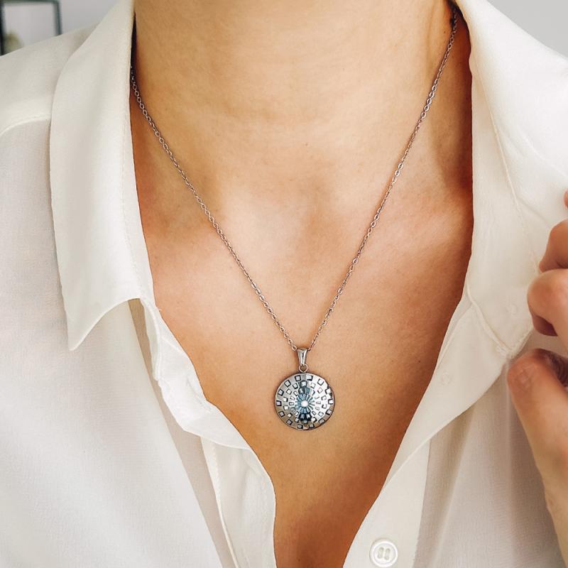 Collier acier avec nacre réglable de 40 à 45 cm