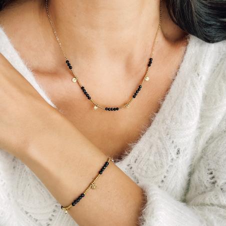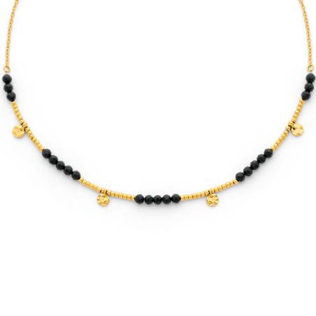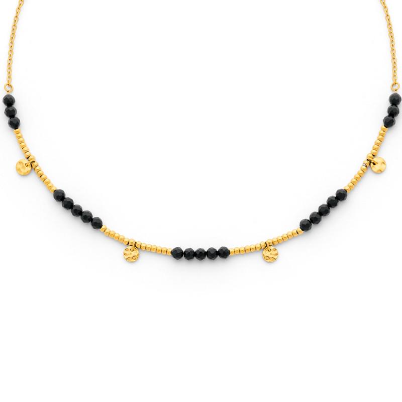 Collier acier doré avec agate noire réglagle de 40 à 45 cm