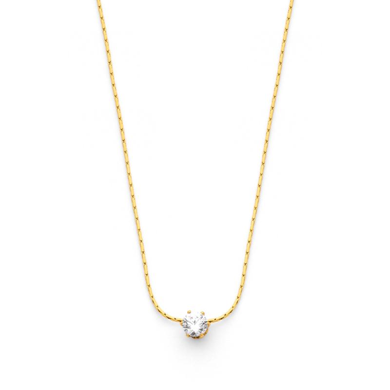 Collier acier doré avec zirconia réglable de 40 à 45 cm