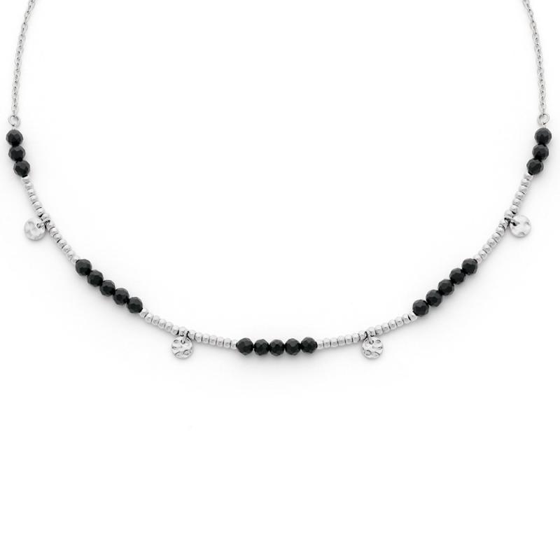 Collier acier avec agate noire réglable de 40 à 45 cm